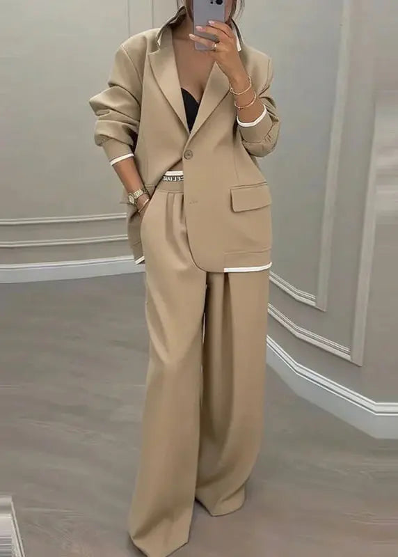 Women’s Tailored Two‑Piece Set – Blazer & Wide‑Leg Trousers