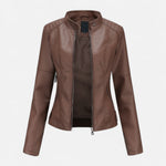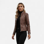 Women’s Heritage Chic Leather Jacket – Stand-Collar Statement Outerwear