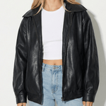 Women’s Relaxed Leather Jacket with Zip & Classic Collar