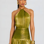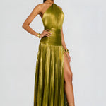 Elegant Gold Maxi Dress for Women – Halter Neck Evening Gown
