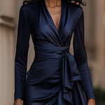Satin Maxi Dress for Women – Chic Draped Wrap Evening Look