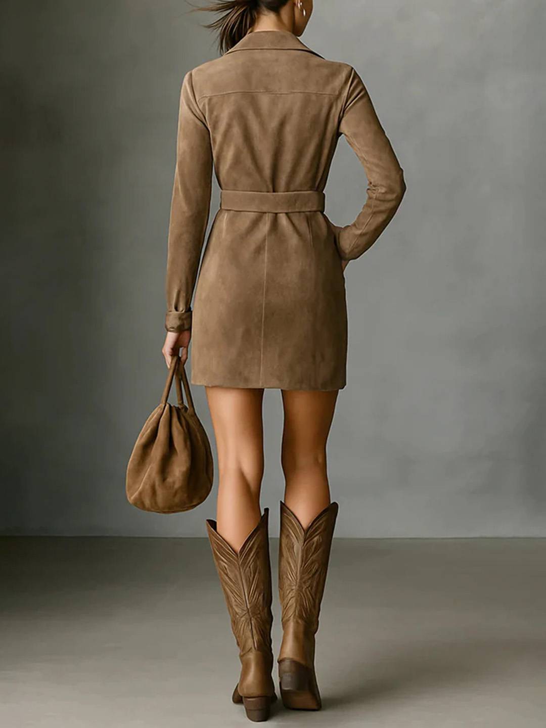 Women’s Button‑Front Suedine Mini Shirt Dress with Belt