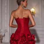 Red Strapless Corset Mini Dress with Ruffled Satin Skirt