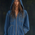Stay effortlessly stylish in this loose hooded denim jumpsuit, designed for women who value comfort without compromising on style. Made from durable washed denim, it features a relaxed, oversized fit that offers easy movement and a modern, laid-back aesthetic. The zip-front closure adds functionality and edge, while the adjustable hood and practical pockets make it perfect for everyday wear.